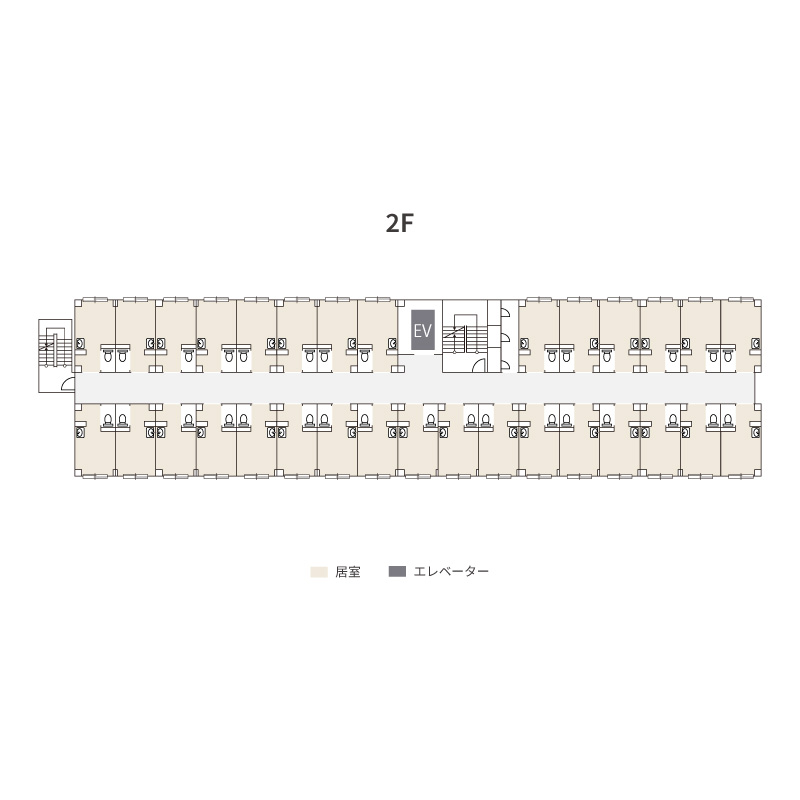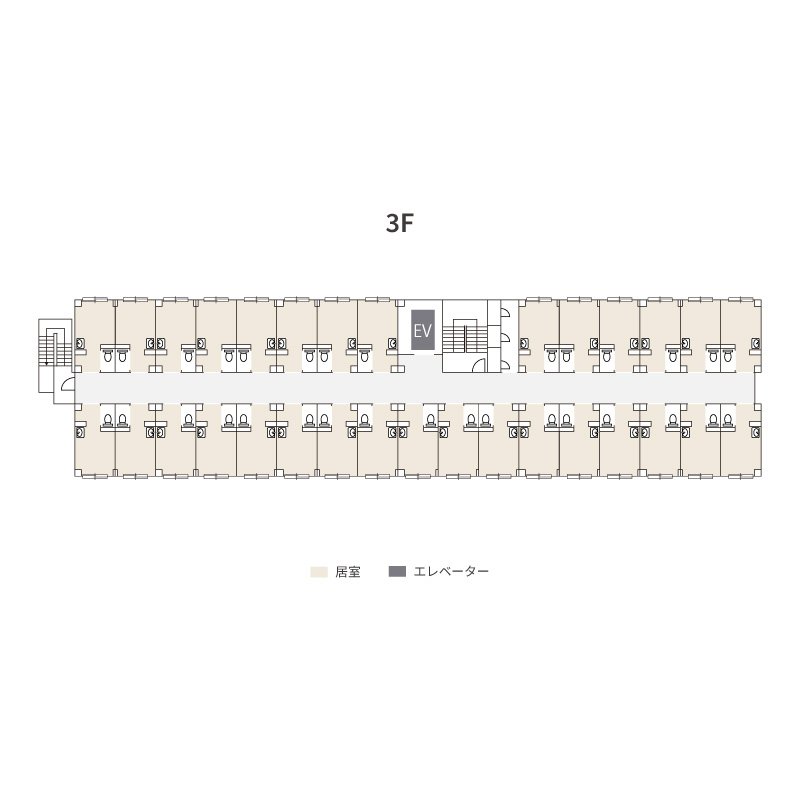 3階建て全68室・部屋すべて個室で居室にはエアコン・トイレを完備。