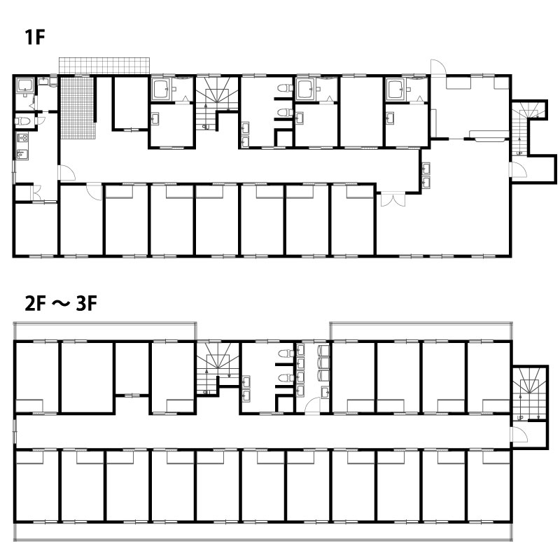 2階から3階は個室と共用トイレやランドリースペースとなります。