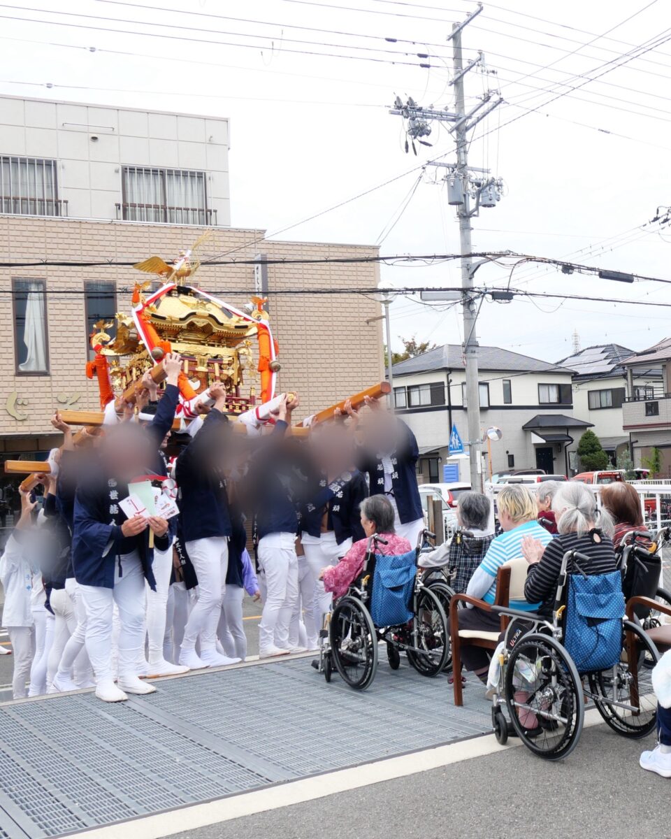 間近まで来てくれたお神輿に大きな拍手が上がり、迫力あるだんじりには少し圧倒されたご様子…。