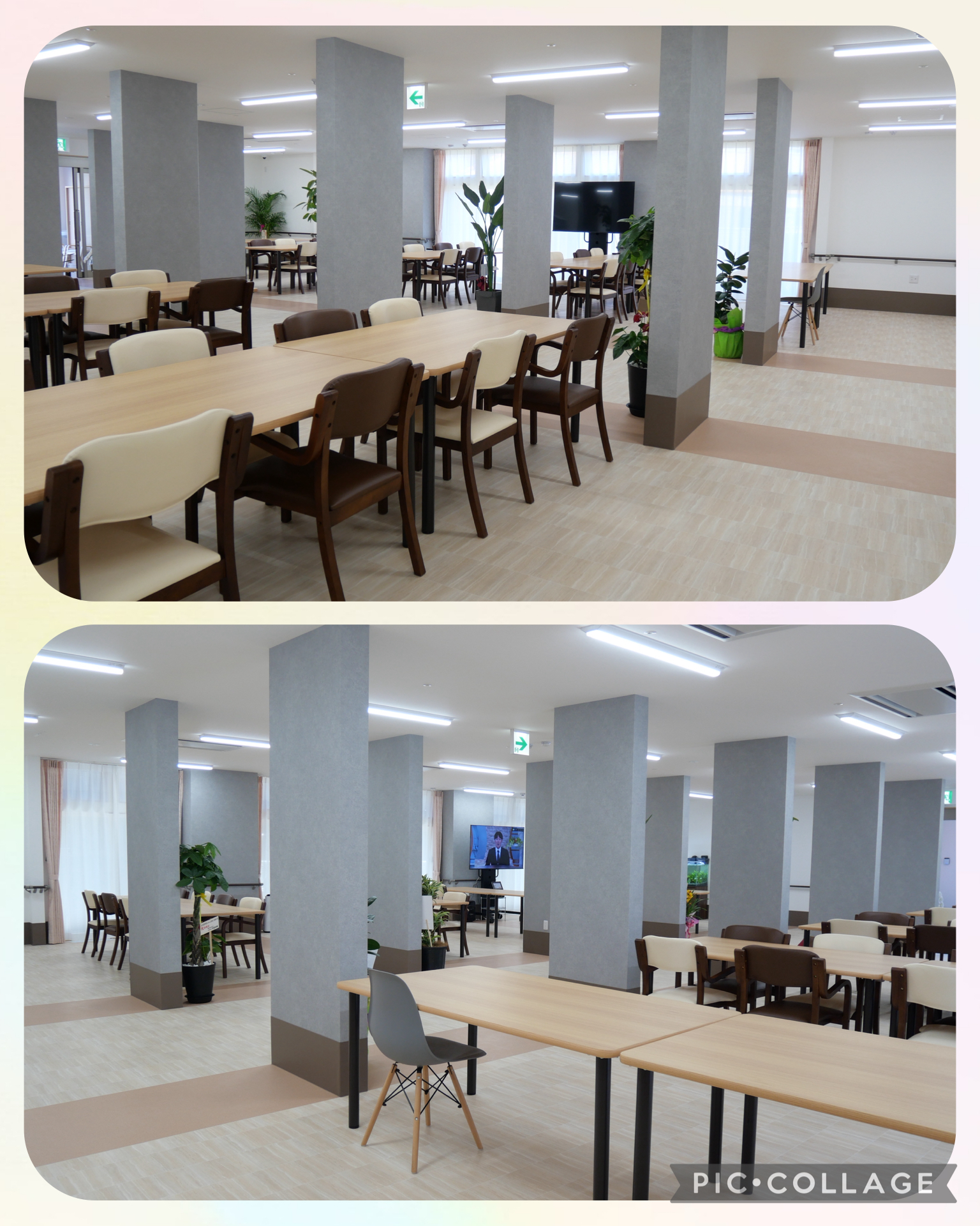 食堂:エントランスから繋がる食堂は、開放的でありながら落ち着いた空間🍽️