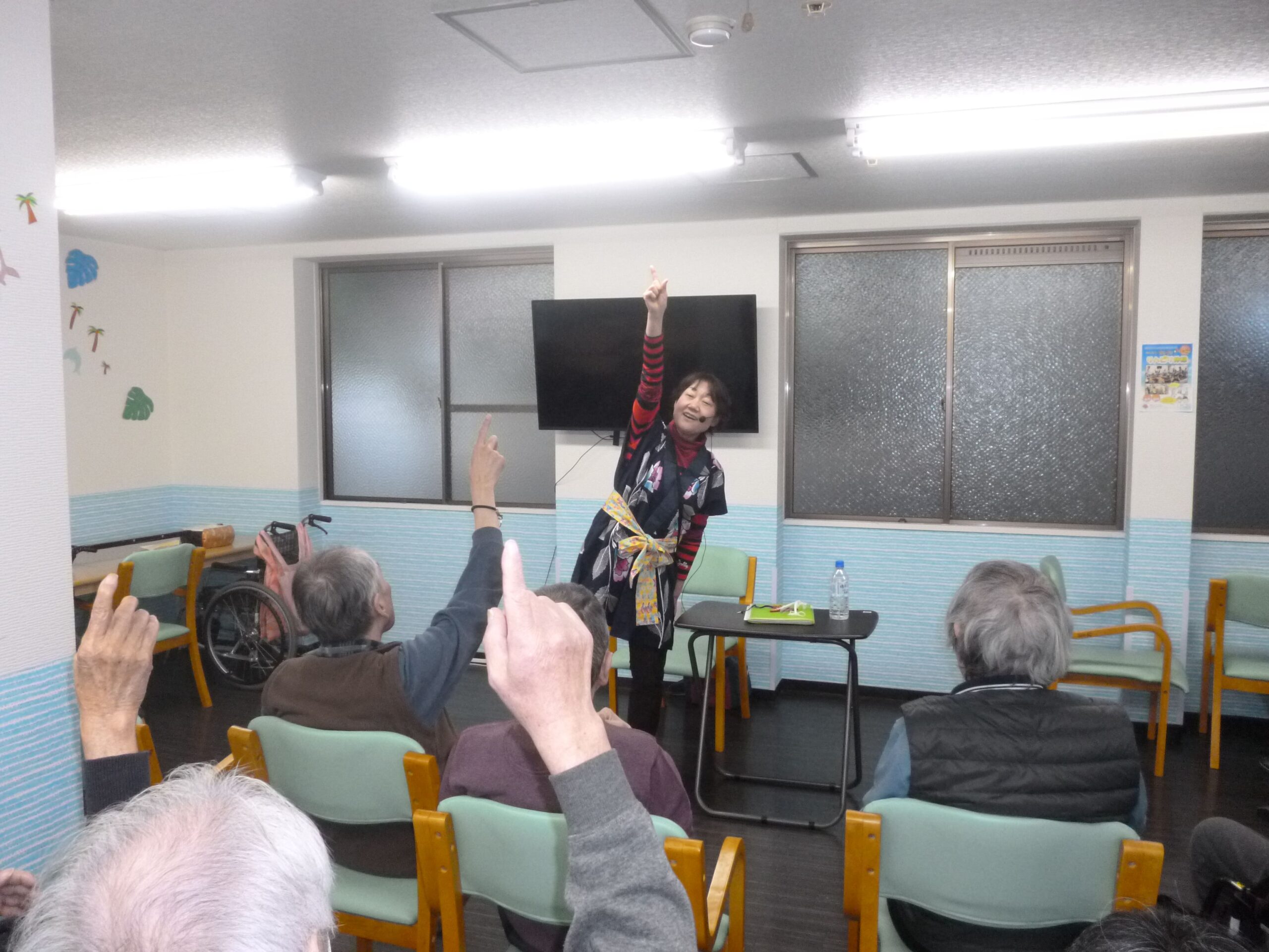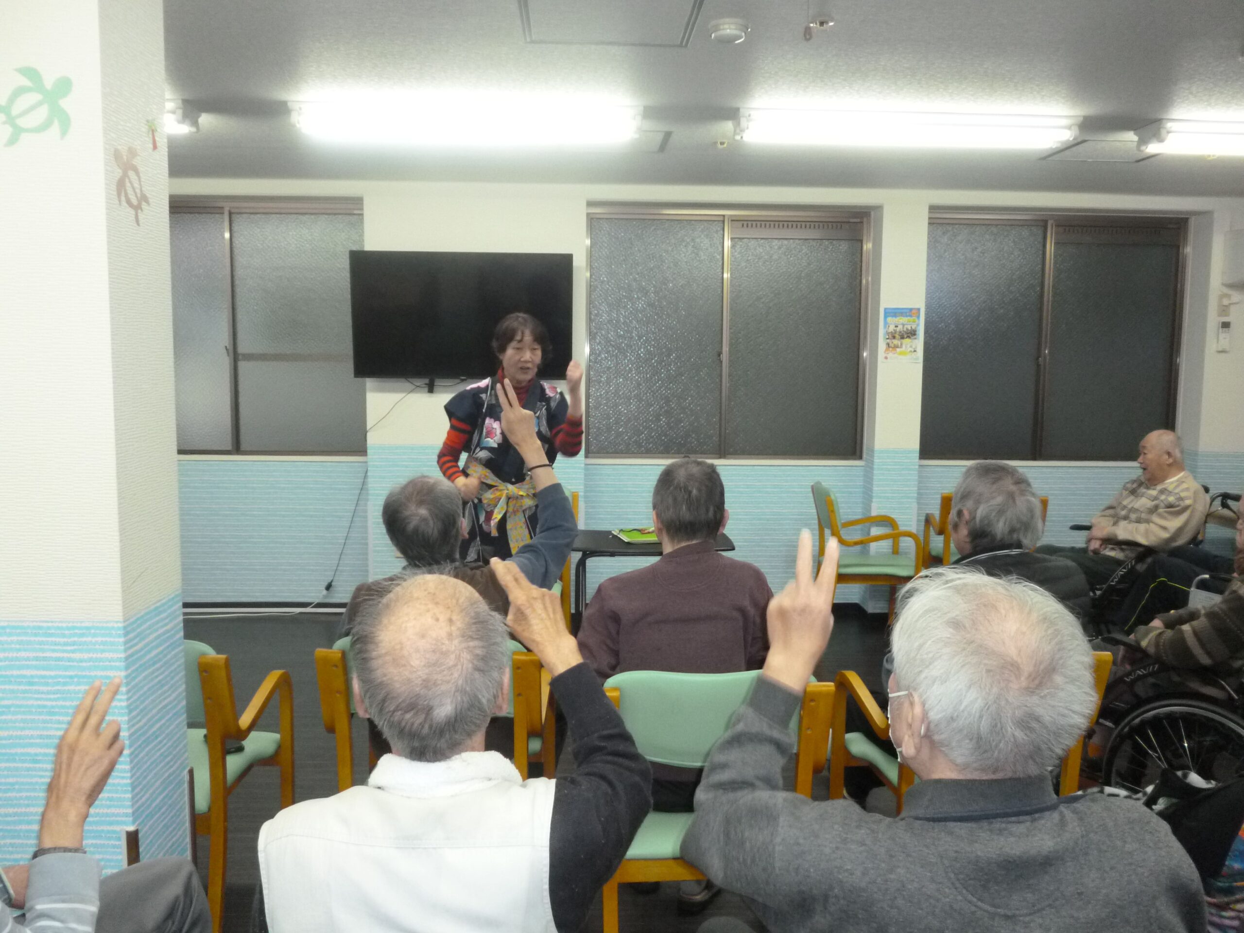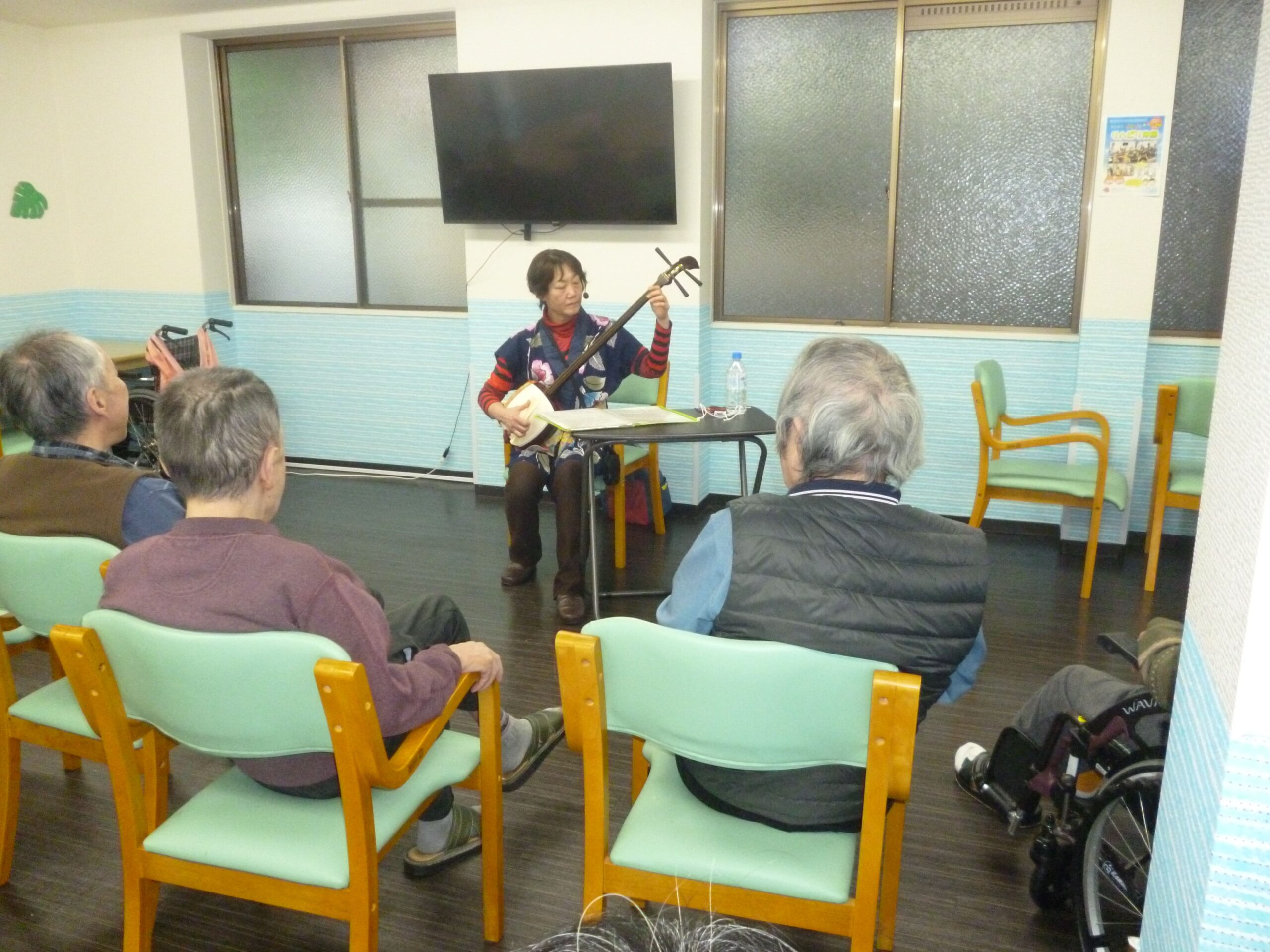 2022.1.24 HIBISU石津川 三味線レクリエーション 1月24日におかなわれました三味線のレクリエーションの報告です。一緒に歌われたり、手拍子や体操など、皆さん楽しいひと時を過ごされていました。 < HIBISU石津川12月レクリ... HIBISU尼崎 歌の会レクリ... >