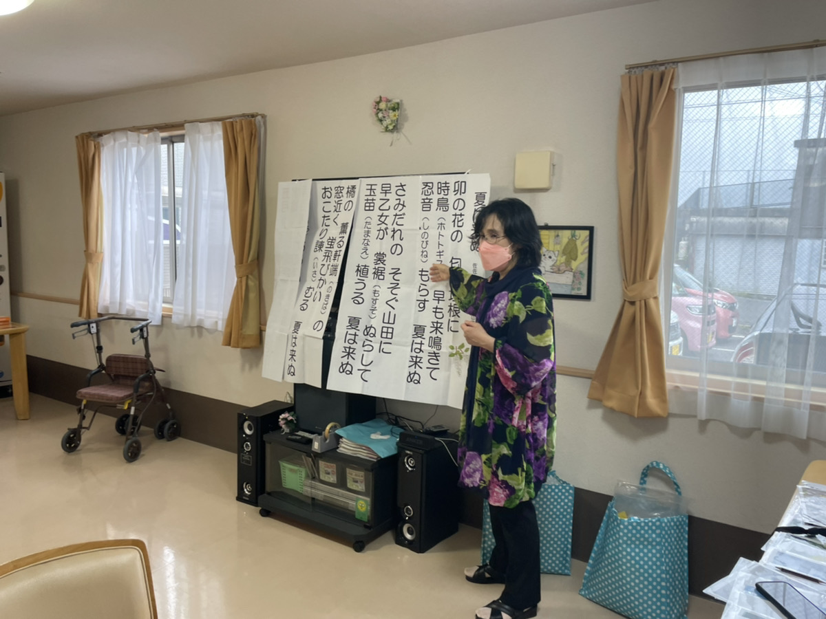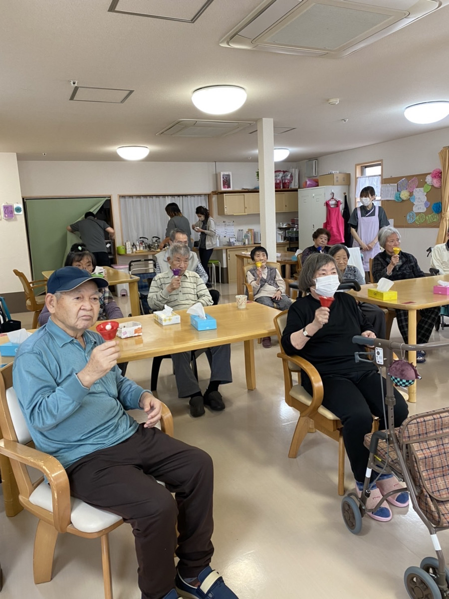 その他にスカーフで薔薇作り、ハンドベルを使ったドレミの歌の演奏など、バラエティに富んだレクリエーションでした。