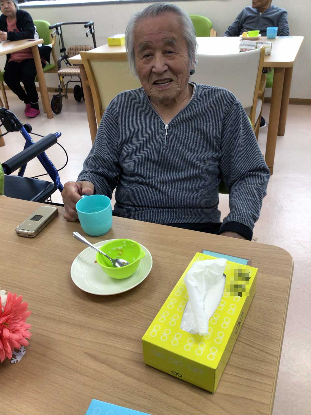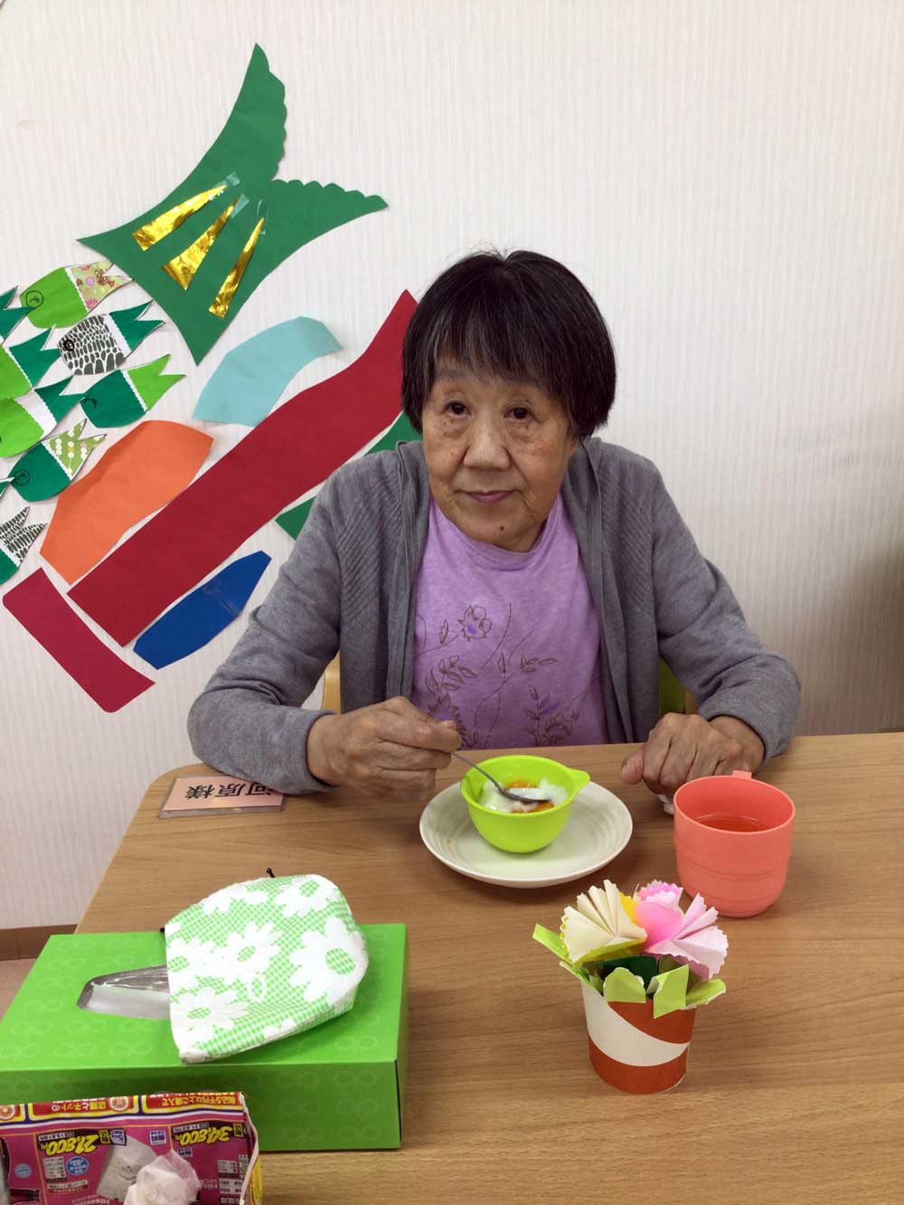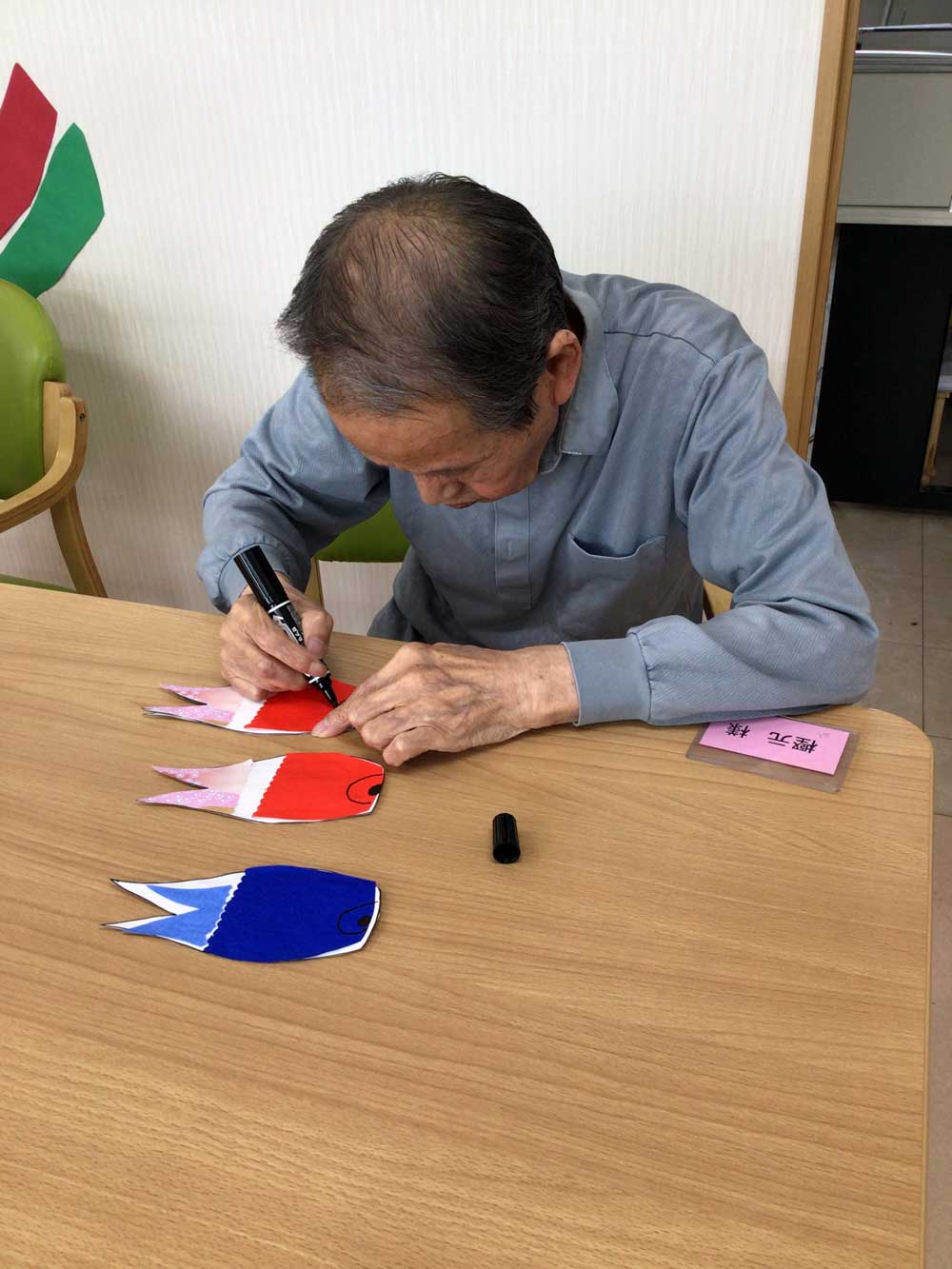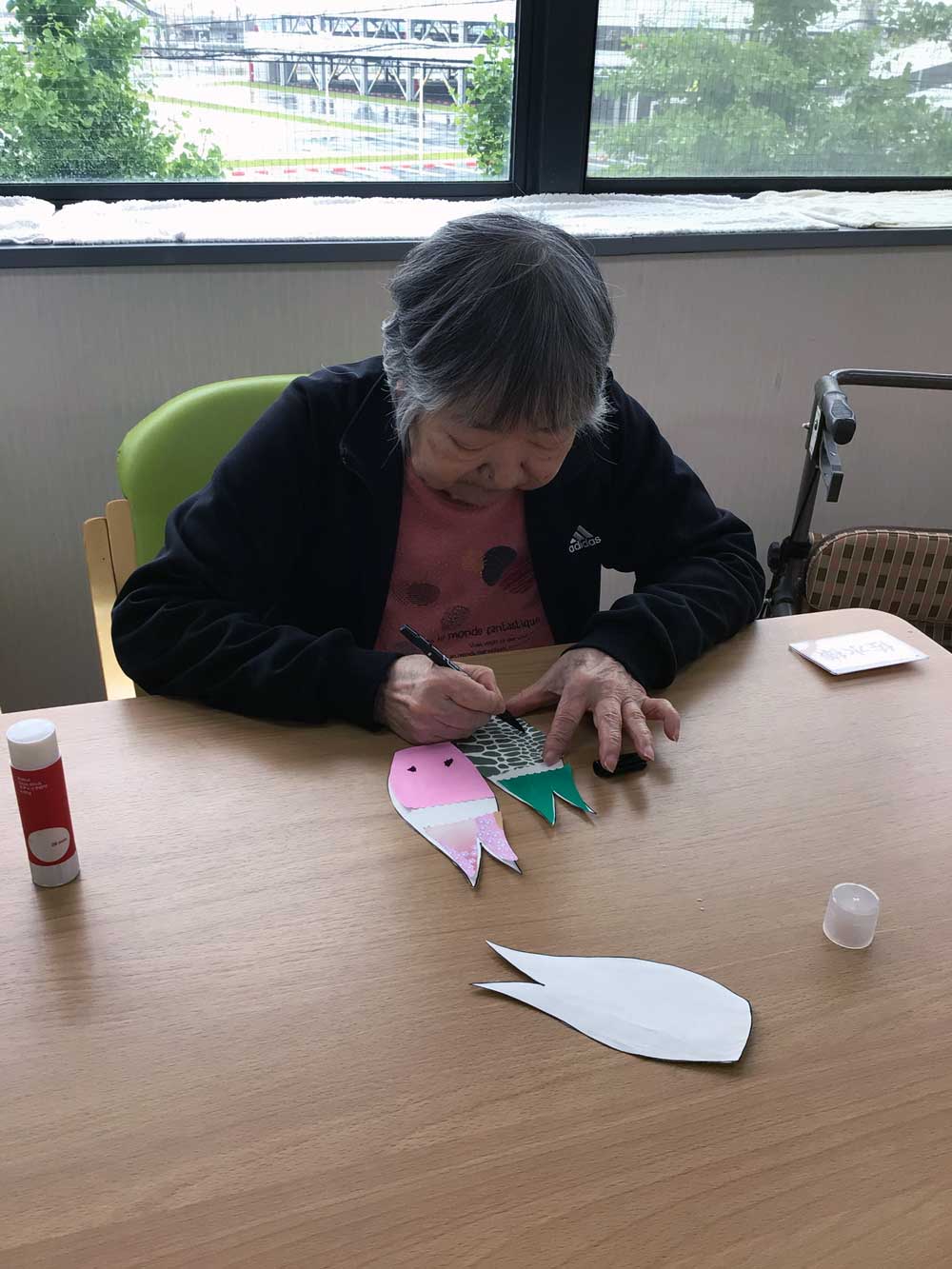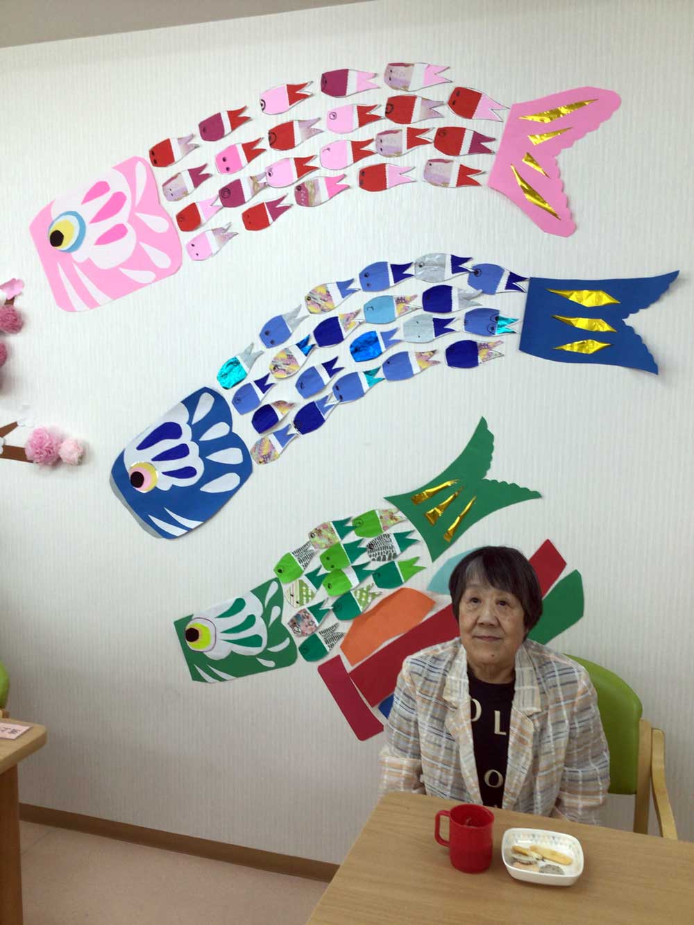 おやつ時間も談笑されながら完食されて、個性的な「ミニ鯉のぼり」を沢山作っていただきました。