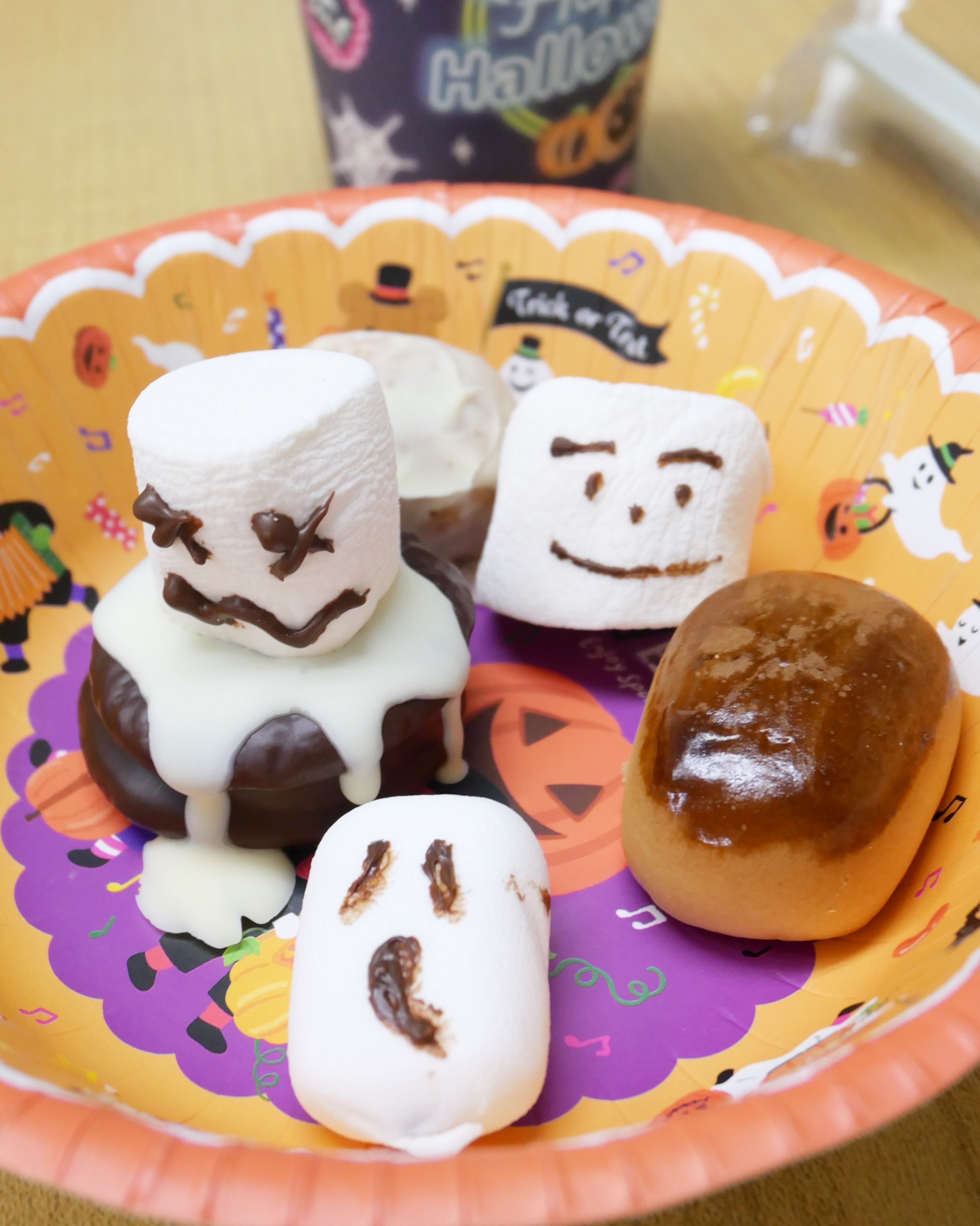 #ハロウィン という事でご提供するお菓子にもひと工夫し、なかなか可愛い?顔を描いてみました!