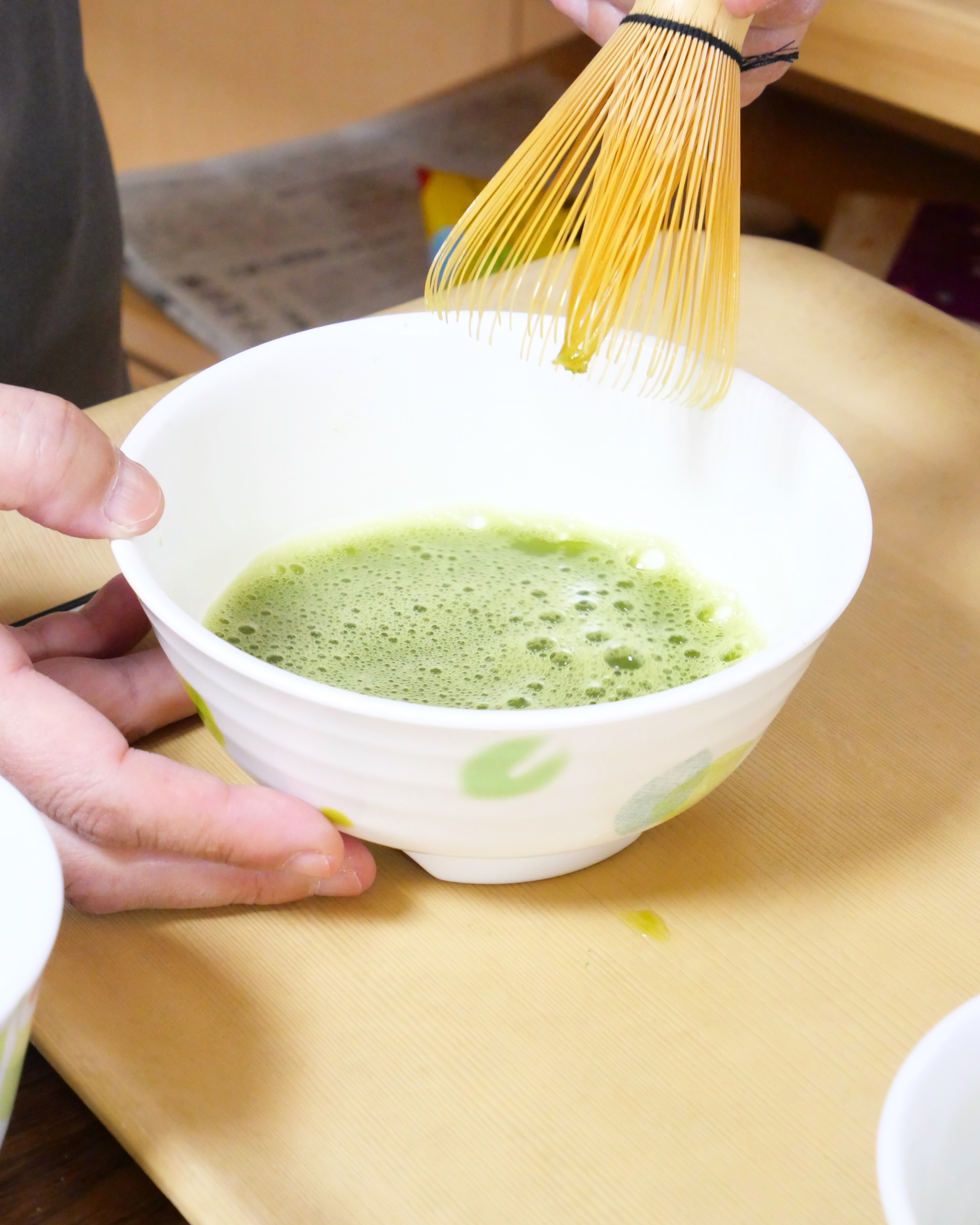 施設長が抹茶を点て始めると利用者さまからは「抹茶のいい香りがしてる!」「久しぶりやから楽しみ♪」と待ち侘びる声が上がりました!