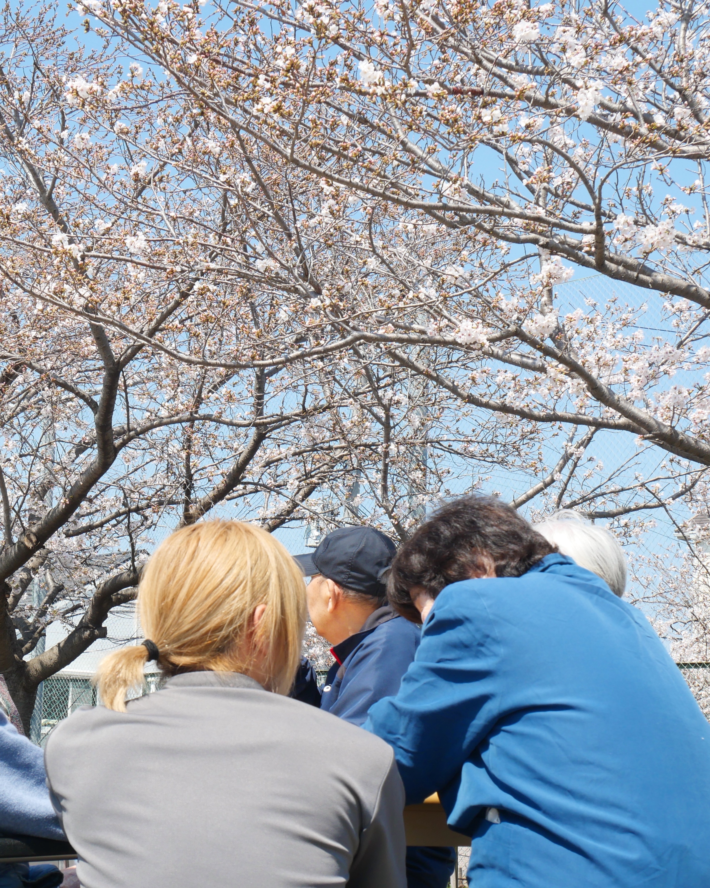 実は昨年も同じ日にお花見をしたのですが、今年は昨年より開花状況も良く、お天気に恵まれました!