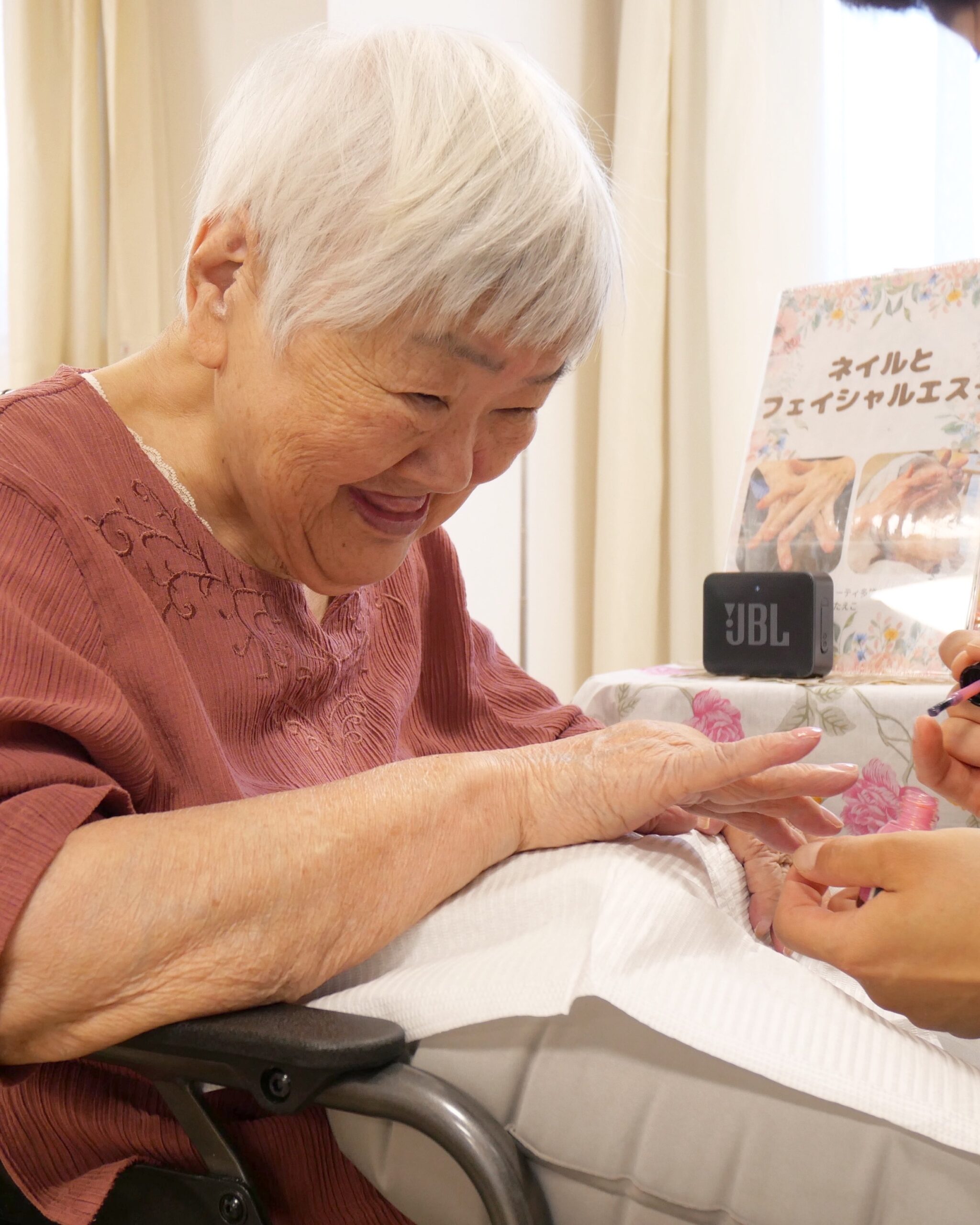 どんどん表情が明るくなっていき、完成したネイルを他の利用者さまにも紹介!