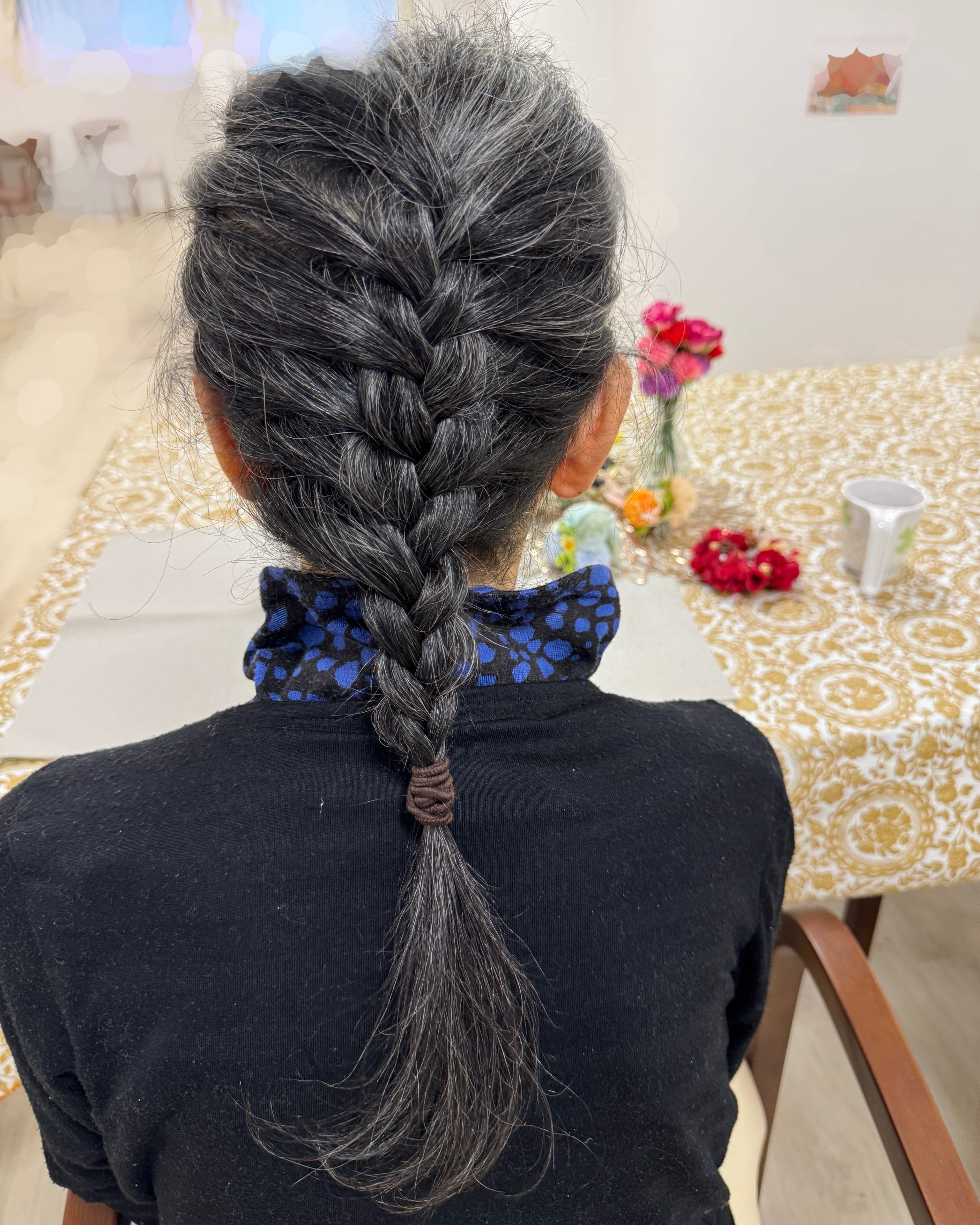 また、個別美容では頭のマッサージを受けた利用者さまの髪を綺麗に編み込んで下さいました!