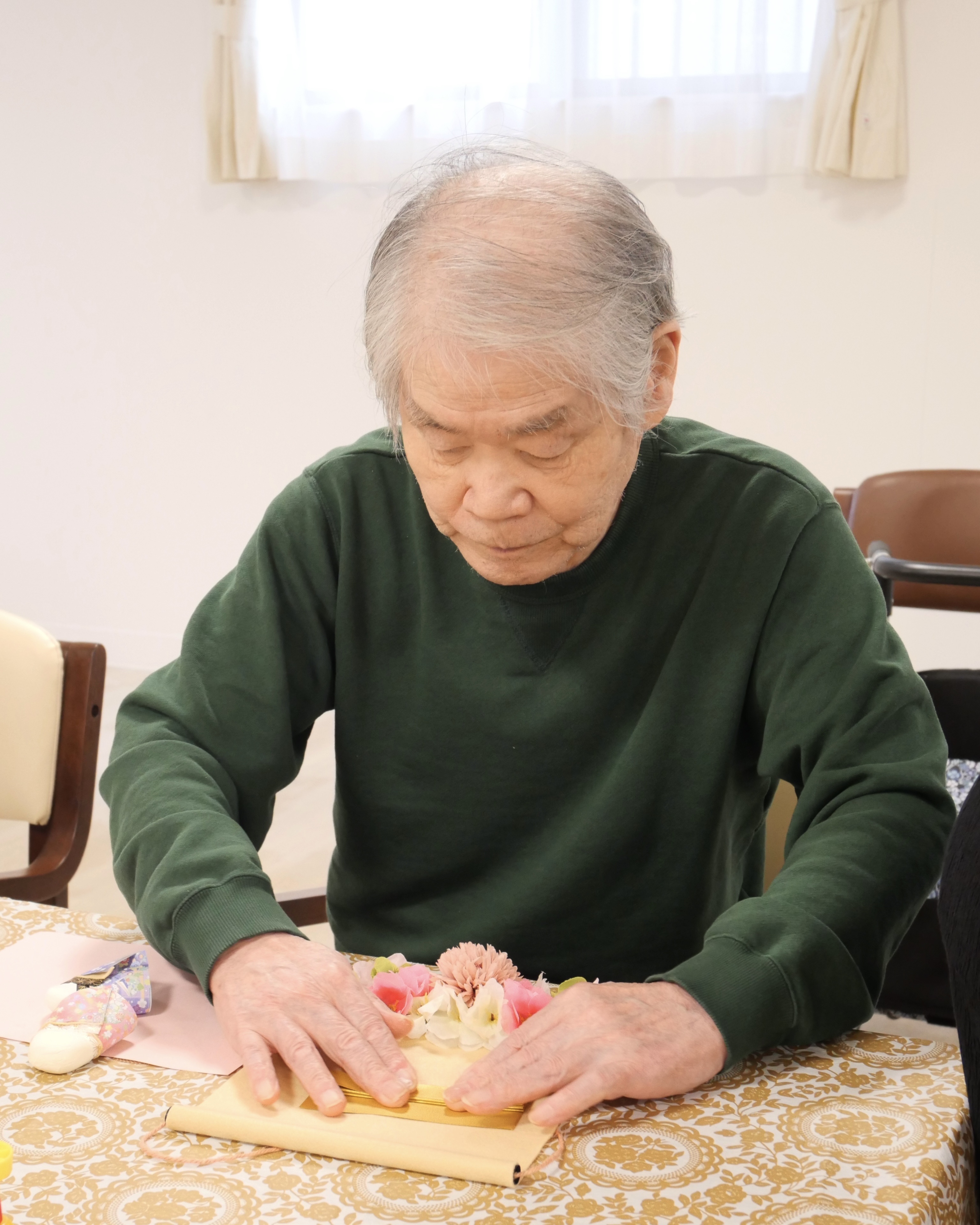 ひな人形の土台となる紙粘土を「ベトつく…」と仰っていた利用者さまですが、すぐに柔らかい手触りに夢中になっておられました😂