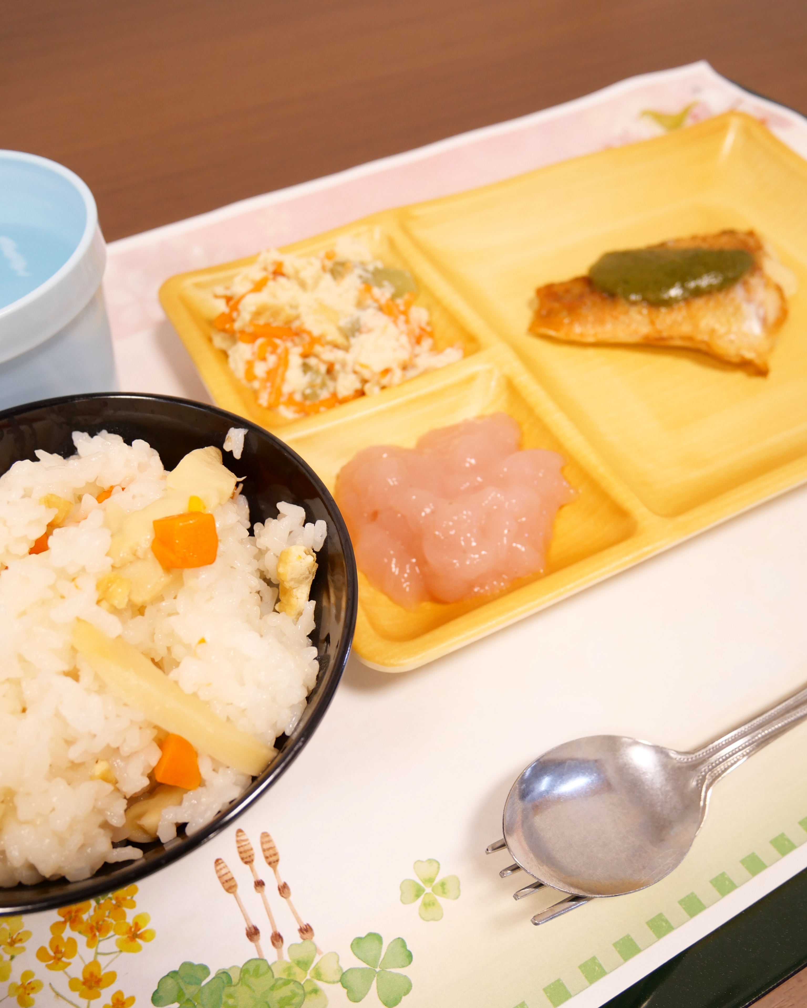 旬の筍を使った筍ご飯、デザートには春らしいさくらの羊羹をご用意🌸
