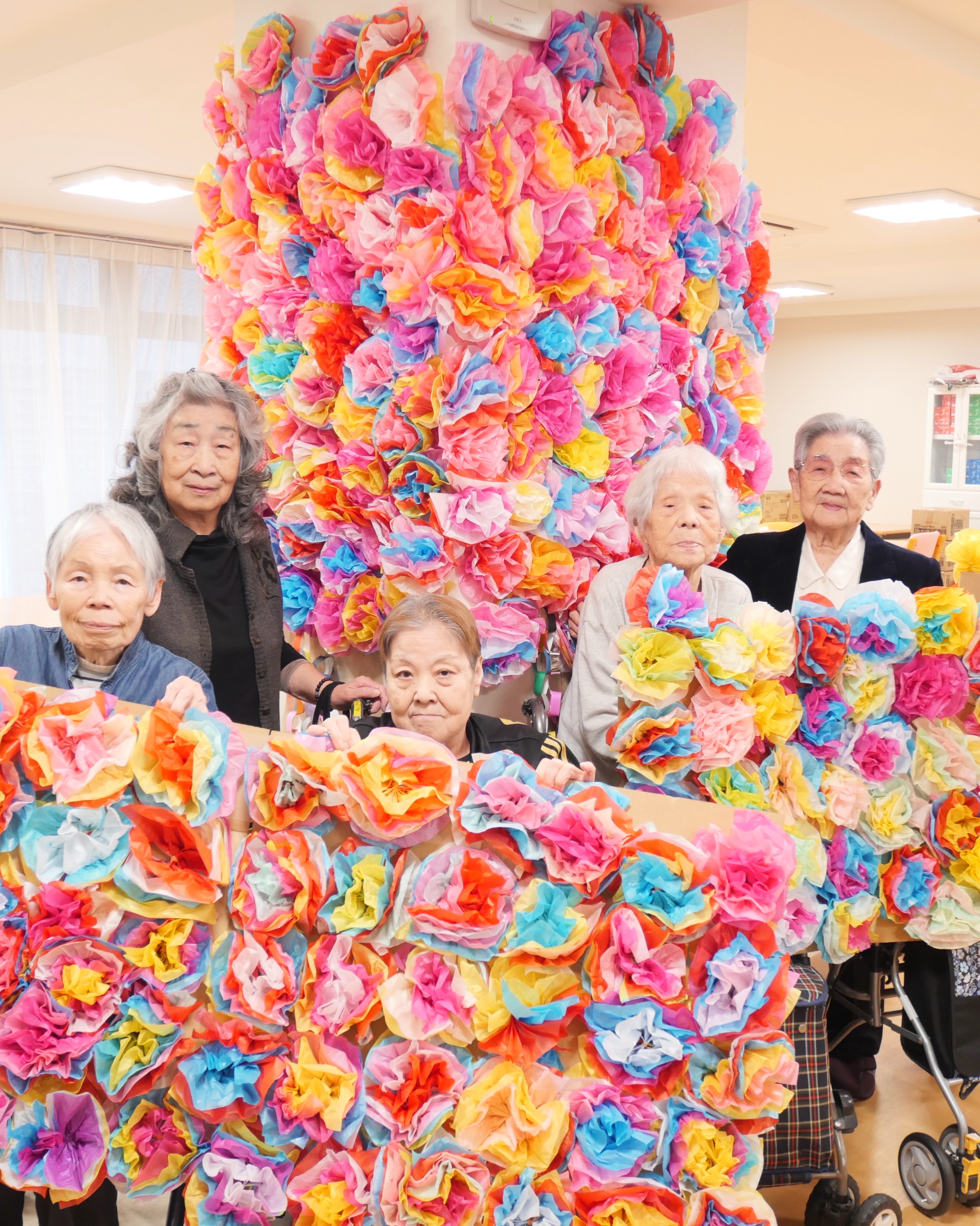 なかなか皆さまを外へお連れするのが難しい…でも春らしくお花見はしたい!と言う事で、利用者さまにたくさんのペーパーフラワーを作っていただき、食堂を飾り付けてお花見の雰囲気を味わいました🌸